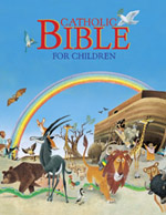 The Catholic Bible for Children is a welcome new title from Catholic Book Publishing.? With over 75 Bible stories specifically for children, this full-color illustrated Catholic Bible for Children will teach and delight children.? From God’s creation of the world to Saint Paul’s travels, this sturdy hard-cover Catholic Bible for Children has it all, including a brilliantly colored, striking cover illustration of the animals disembarking from Noah’s Ark with a rainbow in the background.
